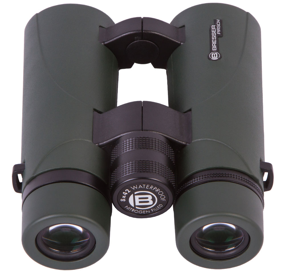 Многое в Bresser Pirsch 8x42 можно настроить под свои нужды: расстояние между зрачками, положение поворотно-выдвижных наглазников, резкость картинки, диоптрии на правом окуляре. Люди с неидеальным зрением оценят окуляры с вынесенным зрачком, которые не сужают поле зрения при наблюдениях в очках.