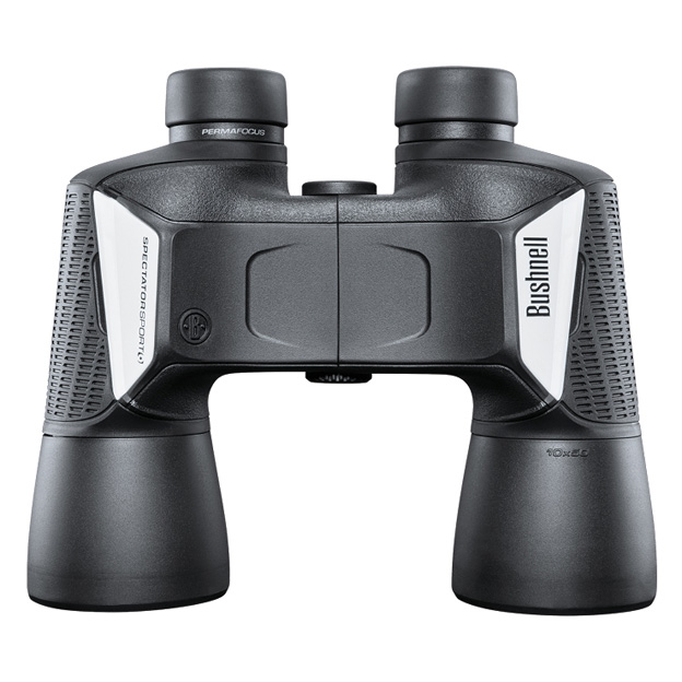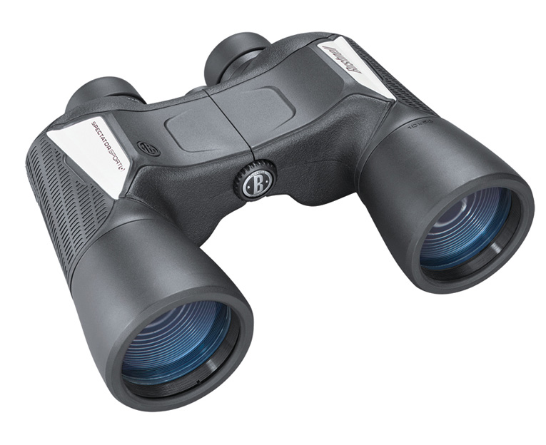 Bushnell Spectator Sport 10x50 – надежный бинокль с 10-кратным увеличением, который по достоинству оценят натуралисты, охотники, любители походов и путешествий. Большие 50-миллиметровые объективы с линзами с многослойным просветлением собирают много света. Оптика прибора построена на призмах Porro из стекла BaK-4, поэтому изображение получается ярким и насыщенным. Водозащищенный пластиковый корпус заполнен азотом, соответственно, оптические элементы защищены от брызг, пыли и запотевания. Фокусировка свободная, настройка резкости не требуется. Прибор оснащен резиновыми наглазниками. Есть возможность установить бинокль на штатив.