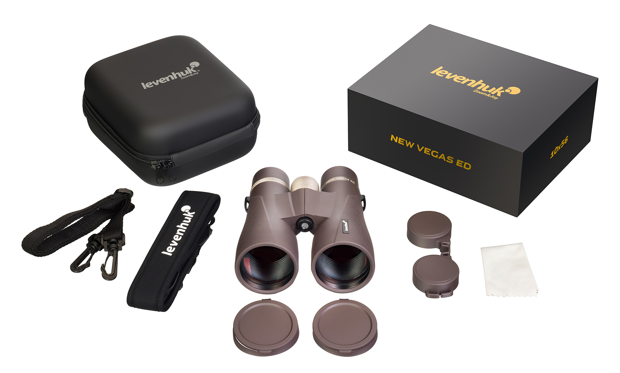 Линзы Levenhuk New Vegas ED 10x56 изготовлены из высококачественного ED-стекла, уменьшающего хроматическую аберрацию и помогающего в формировании контрастного изображения с корректной цветопередачей. Оптическая схема построена на компактных roof-призмах, материалом для которых было выбрано оптическое стекло BaK-4. Они отлично собирают свет и позволяют уменьшить габариты прибора с сохранением его оптической мощности, что немаловажно для удобства транспортировки и переноски бинокля. Для пользователей с особенностями зрения предусмотрена опция диоптрийной коррекции ±4 D. Наглазники имеют поворотно-выдвижной механизм с возможностью фиксации в одной из трех позиций – это будет полезно для подбора удобного удаления выходного зрачка пользователями, носящими обычные или защитные очки.
