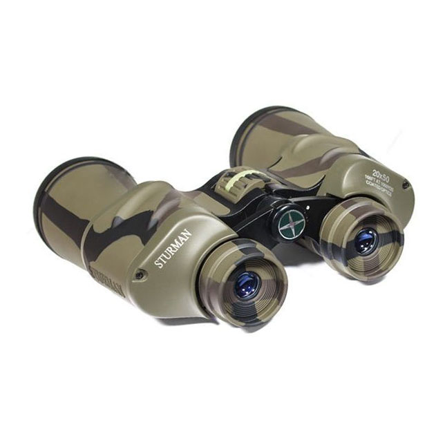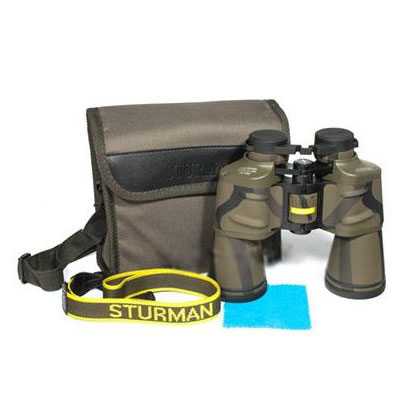 Бинокль STURMAN 20x50 – крупный полевой бинокль бюджетного сегмента. Выполнен в алюминиевом корпусе с нескользящим полимерным покрытием камуфляжной раскраски. Понравится охотникам и рыболовам, поскольку не заметен на местности. Полноразмерные призмы Порро выполнены из стекла BK-7, внешние оптические элементы просветлены для повышения яркости передаваемого изображения. Из-за высокого 20-кратного увеличения рекомендуется использовать эту модель со штатива (адаптер для установки на штатив уже в комплекте). В комплект также входят чехол, ремень, защитные крышки и салфетка.