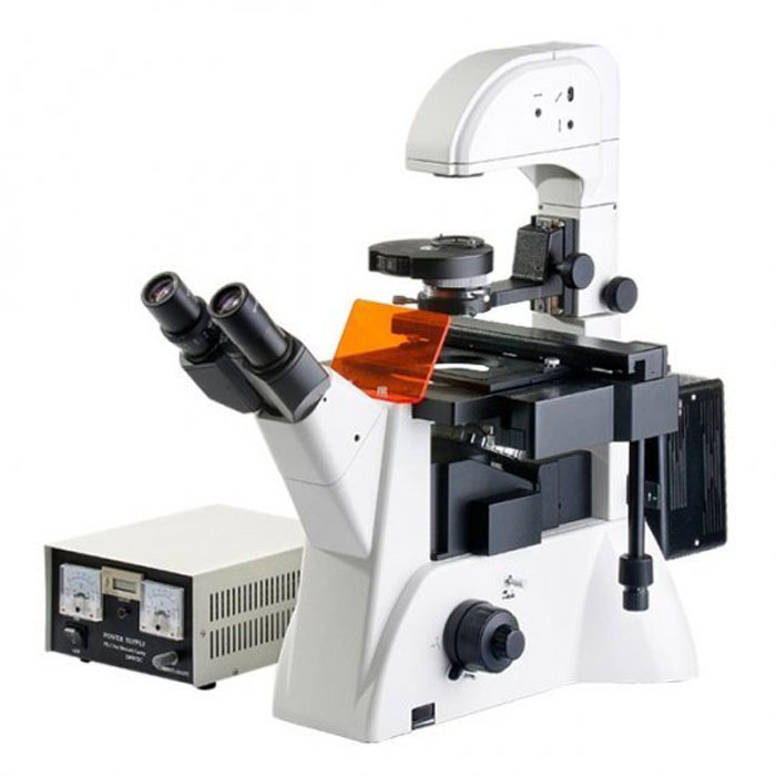 С многофункциональным лабораторным микроскопом Биомед 4И ЛЮМ можно проводить исследования в светлом поле, в люминесцентном свете или по методу фазового контраста. Прибор собирается из готовых модулей, благодаря чему можно быстро переходить от одного типа освещения к другому. Визуальная насадка – бинокулярная, с парой окуляров 10х. В револьвер можно поставить 5 объективов. В комплекте, помимо обычных планахроматов с увеличением 10, 20 и 40 крат, есть 3 фазовых планахроматических объектива аналогичной кратности. В устройстве два источника света: галогенная лампа (30 Вт) используется для светлого поля и фазового контраста, а для работы в люминесцентном свете – 100-ваттная ртутная лампа с фильтрами B, G, U, UV. Яркость можно увеличить или уменьшить плавным поворотом регулятора. Еще одна особенность микроскопа – предметный столик, на котором есть не только препаратоводитель, но и фиксаторы для чашек Петри и планшетов Терасаки.
