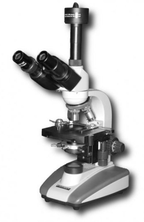 Биомед 5Т – лабораторный микроскоп для изучения медицинских, биологических, химических препаратов. Визуальная насадка – тринокулярная, с отдельным тубусом для цифровой камеры. Она имеет поворотный механизм – микроскоп можно использовать в групповой работе. Окулярные тубусы имеют комфортный для наблюдателя угол расположения, их можно развести на подходящее расстояние и провести диоптрийную подстройку. Револьверное устройство под 4 объектива развернуто «от пользователя». В комплекте с микроскопом поставляются объективы-ахроматы кратностью от 4х до 100х и две пары окуляров 10х/18 мм и 16х/15 мм. Резкость изображения настраивается коаксиальными рукоятками грубой и тонкой фокусировки. Тонкая настройка имеет шаг 0,002 мм. Объект подсвечивается галогенной лампой (20 Ватт), интенсивность света можно плавно изменять. На конденсоре установлен фиксатор для фильтров проходящего света. Предметный столик перемещается по двум осям, для управления есть ручки с правой стороны. Предметное стекло с препаратом фиксируется препаратодержателем.
