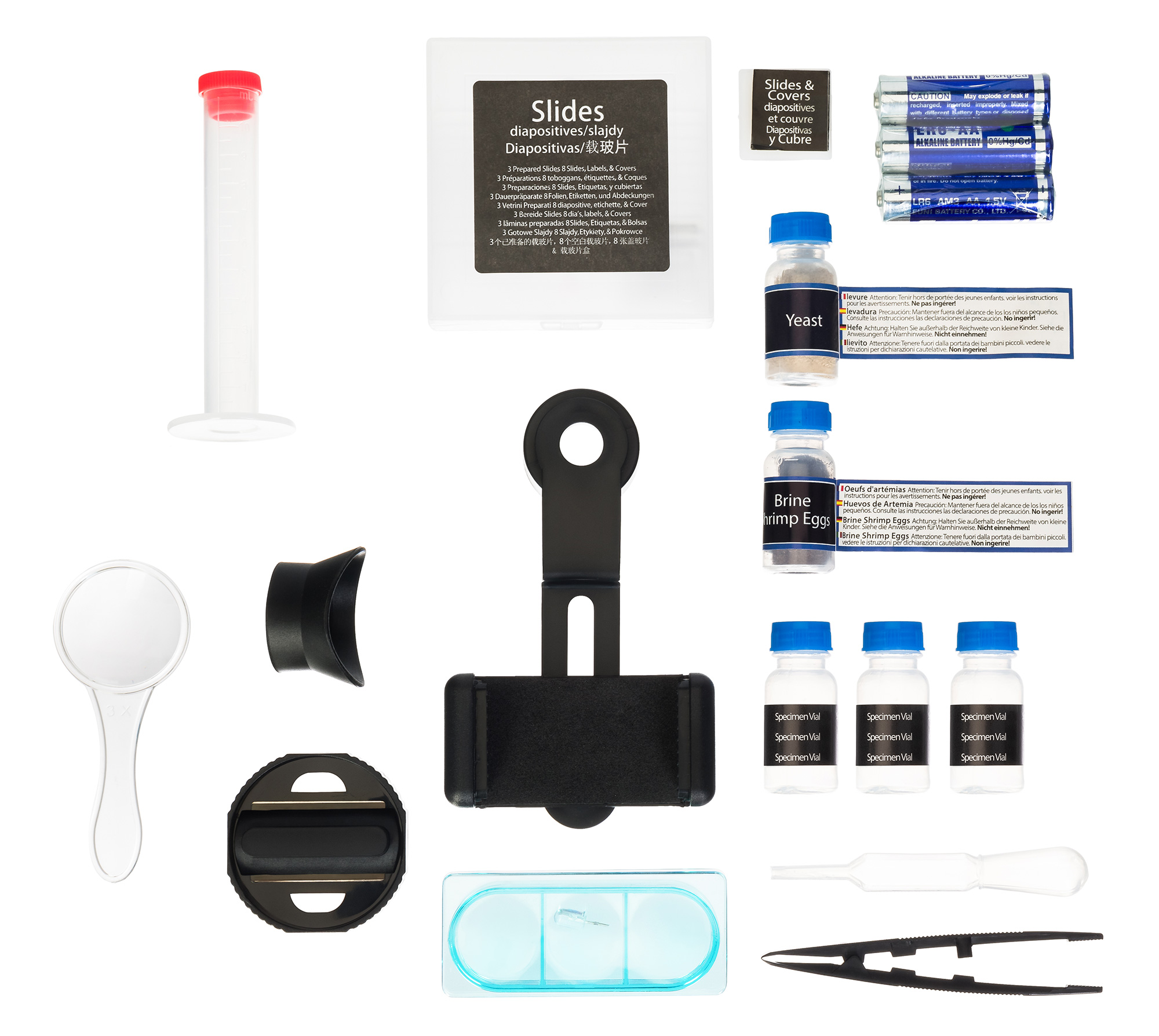 • Детский микроскоп в ярком корпусе, в комплекте идет набор для опытов