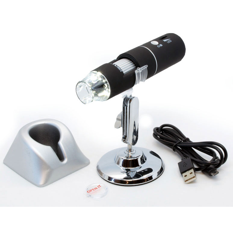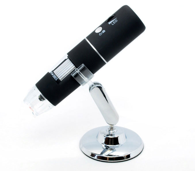 Беспроводной цифровой микроскоп CSW02 2 Мпикс HD Wi-Fi представляет собой компактный оптический прибор с увеличением в диапазоне от 50 до 1000 крат. Встроенная камера 2 Мпикс позволяет фиксировать результаты наблюдений в формате фото и видео в высоком разрешении до 1920х1080 пикс. Есть возможность беспроводного подключения по Wi-Fi – к смартфону либо планшету. Прибор снабжен светодиодной подсветкой с регулировкой яркости. Питание микроскопа осуществляется от встроенного аккумулятора (не рекомендуется использовать прибор во время зарядки). В комплект поставки включены регулируемый кронштейн и USB-кабель.