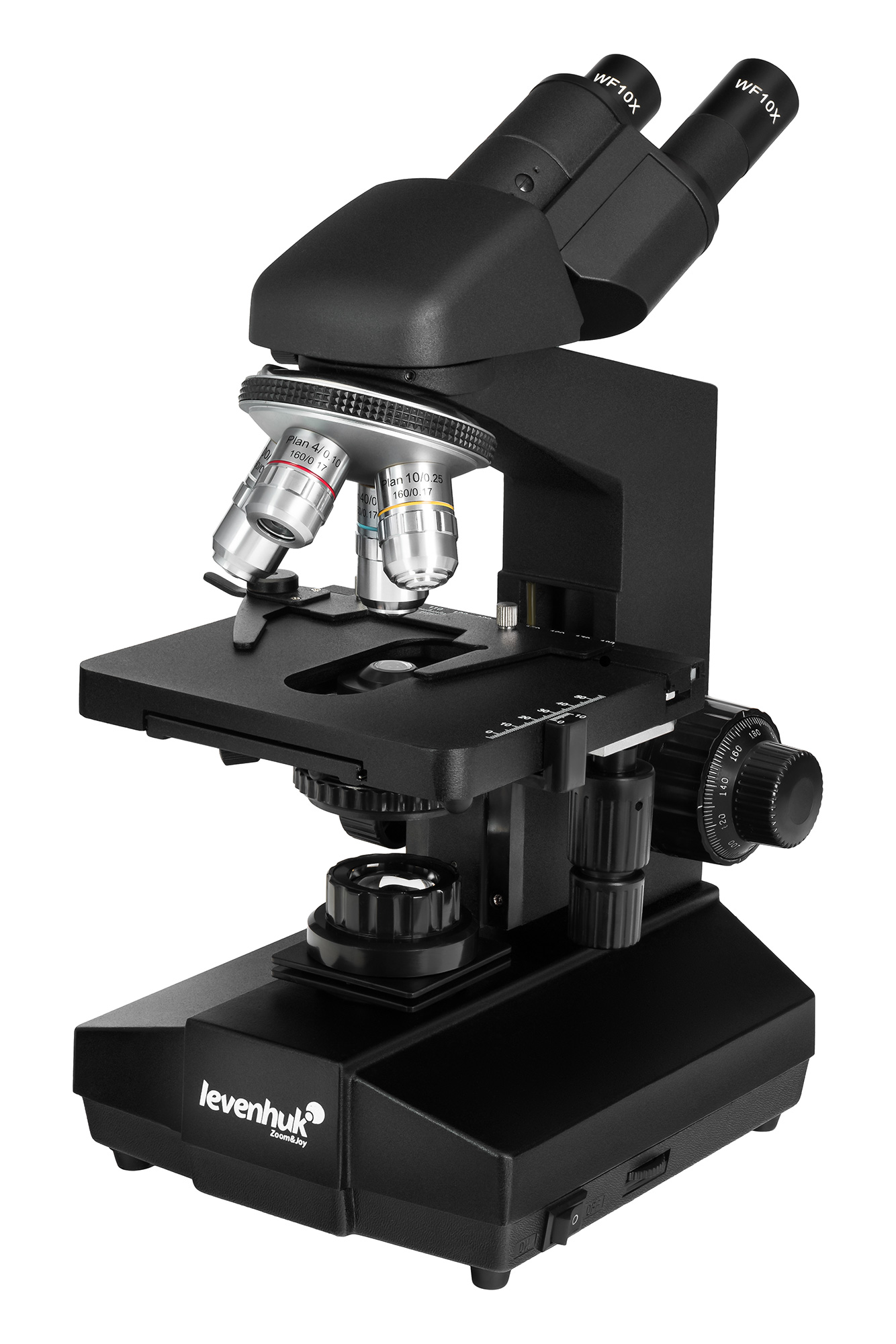 В револьверное устройство можно установить до четырех объективов одновременно, полный базовый комплект включает объективы с увеличениями 4х, 10х, 40х и 100х. Все объективы планахроматические, то есть эффективно сглаживающие искажения и формирующие изображение высокой четкости. Объективы 40х и 100х имеют защиту передней линзы, 100-кратный объектив может применяться для работы по методу масляной иммерсии. Фокусировка оптики выполняется рукоятками настройки, расположенными с двух сторон штатива: предусмотрена как грубая, так и тонкая настройка фокуса. Механизм коаксиальный – рукоятки расположены на одной оси.
