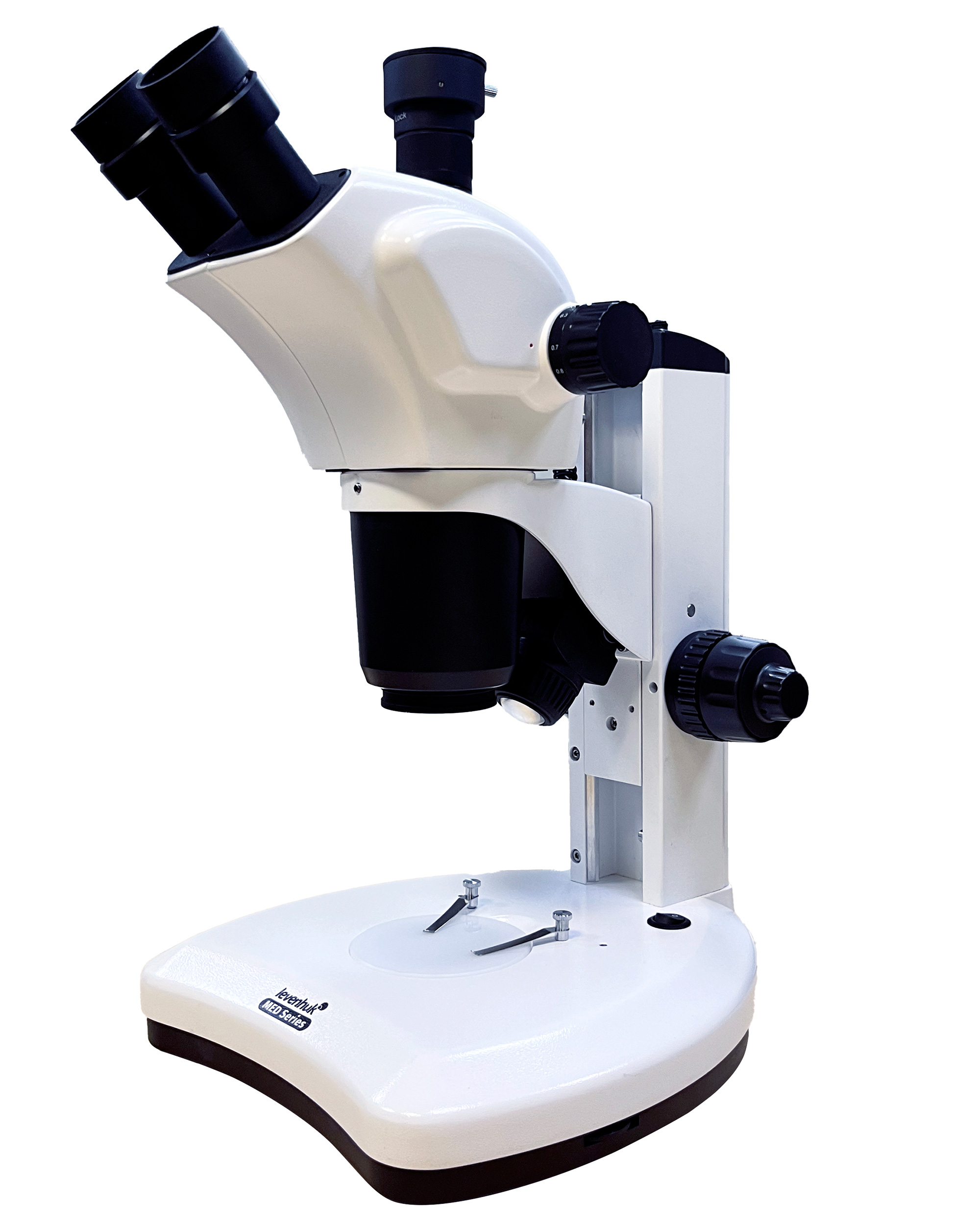 Ключевая особенность микроскопа – панкратический объектив, позволяющий изменять увеличение не дискретно, а плавно. При регулировке кратности не сбивается фокусировка, трансфокатор отличается очень точным и выверенным ходом. Увеличение микроскопа находится в диапазоне от 7 до 63 крат, формируемое изображение – неперевернутое (прямое). Благодаря бинокулярному визуальному узлу вести наблюдения можно сразу двумя глазами, причем возможность корректировки диоптрий предусмотрена для обоих тубусов. В комплект включены окуляры с вынесенным зрачком, т. е. они подходят для наблюдений в очках. В верхней части микроскопа предусмотрена отдельная вертикальная трубка, в которую можно установить цифровую камеру. Она не включена в комплектацию, но с ее помощью станут возможными вывод изображения на внешний экран, фотографирование и видеозапись исследований.