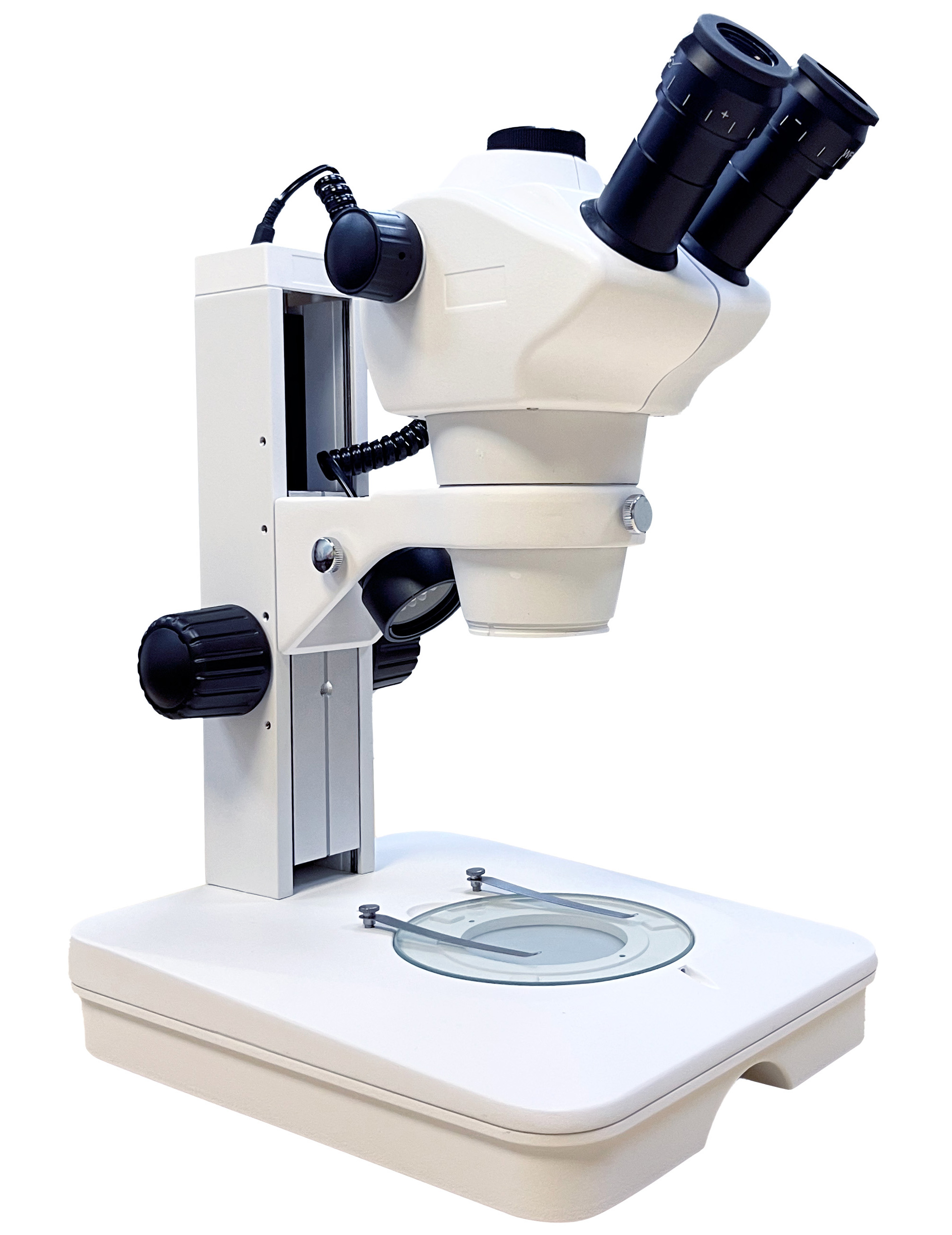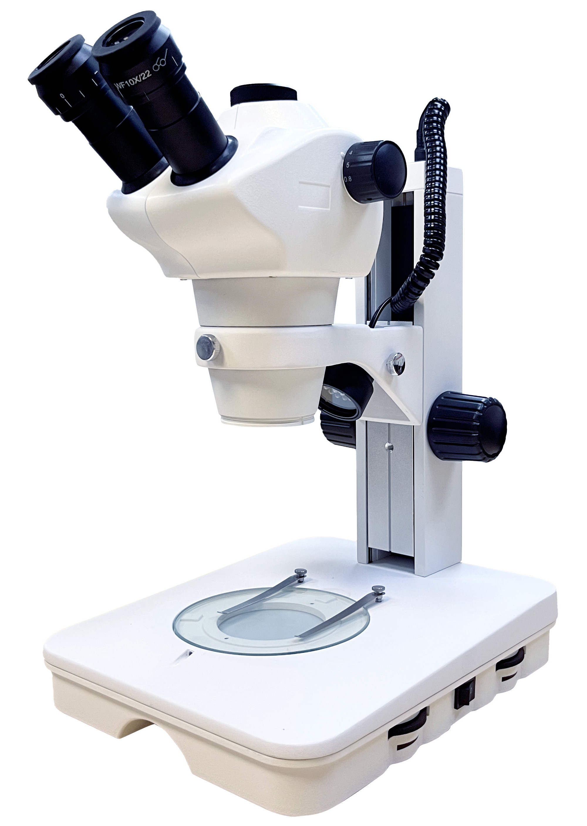 Одна из основных особенностей микроскопа – плавно изменяемое увеличение с механизмом фиксации click-stops (при выборе определенной кратности слышен щелчок). Механизм фиксации крайне полезен при выполнении линейных измерений. Изменение увеличения происходит без потери фокуса, картинка в окулярах прямая (неперевернутая). Диапазон увеличения составляет от 8 до 50 крат.