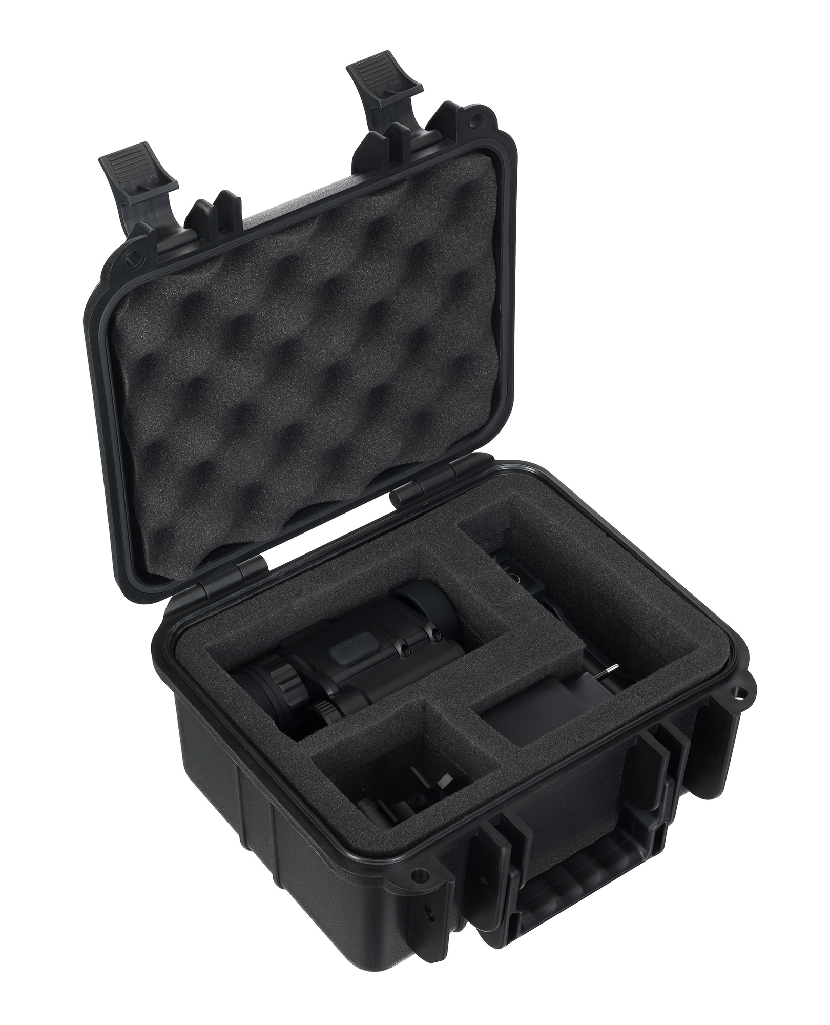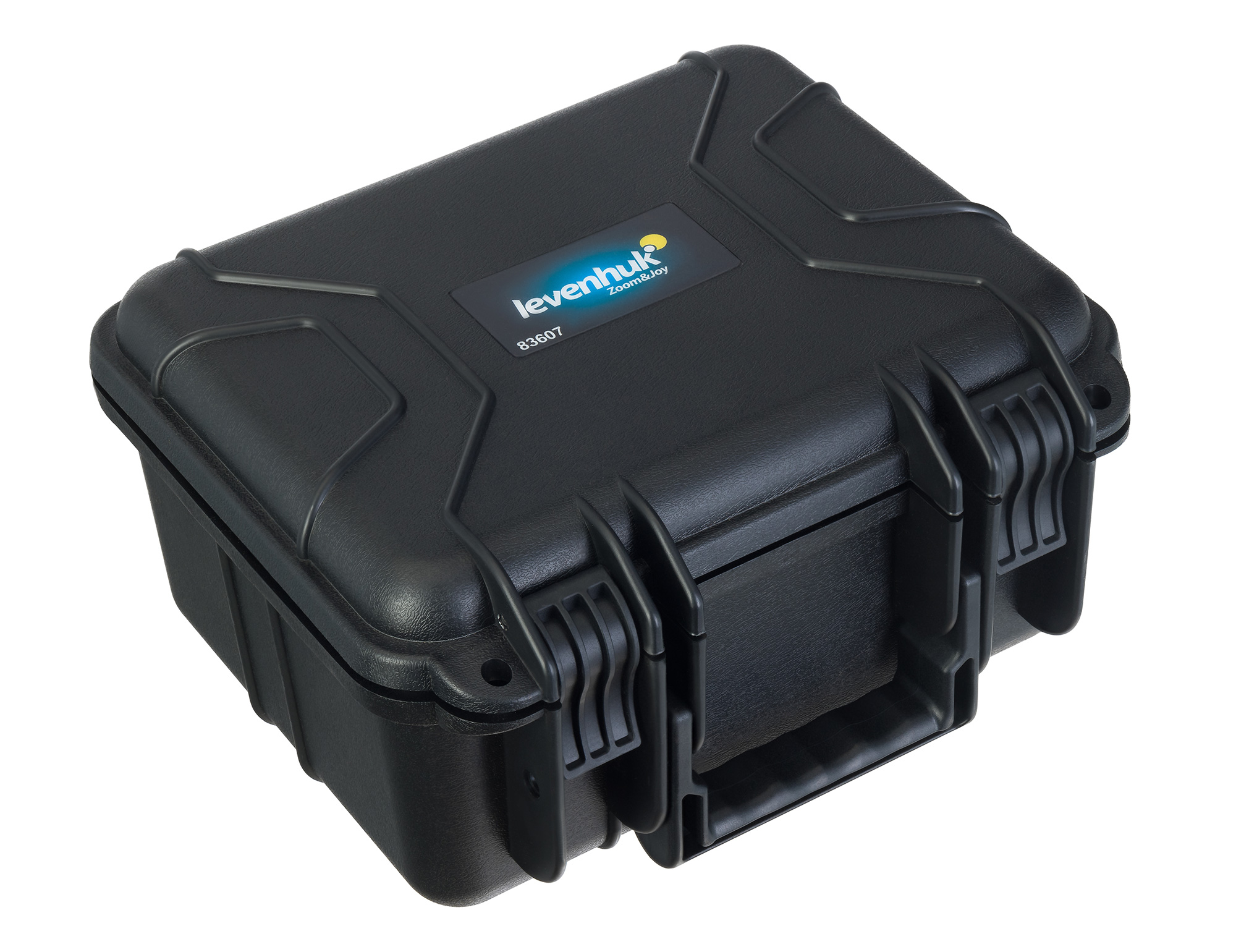 Корпус монокуляра выполнен из улучшенного ABS-пластика, который делает корпус более прочным, упругим и устойчивым к случайным повреждениям. Уровень влагозащищенности IP67 позволяет использовать прибор в пасмурную погоду. В комплект входит кронштейн для крепления к шлему.