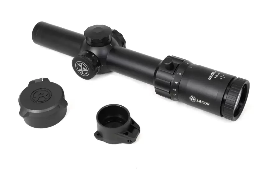 тактический «загонник» от российского бренда Arkon Technologies. Перед вами новинка 2024 года, попадающая в разряд LPVO оптики. На «честной» единице прицелом можно пользоваться как обычным коллиматором, ведя стрельбу с двумя открытыми глазами. К услугам стрелков баллистическая сетка с подсветкой, расположенная в первой фокальной плоскости, быстрофокусируемый окуляр с упором для пальца и большой вынос выходного зрачка. Высокоточные механизмы выверки с шагом 0,1 MIL позволят идеально настраивать оптику для выстрелов не только на коротких, но и на средних дистанциях. В оптической системе использованы премиальные ED стекла, обеспечивающие получение высококачественной картинки с реалистичной цветопередачей и полным отсутствием любого рода оптических искажений. Корпус Arkon Model A 1-8x24 изготовлен из монолитной заготовки высокопрочного алюминиевого сплава. В качестве защиты от запотевания внутренние полости заполнены осушенным азотом. Диаметр центральной трубы составляет 30 мм.