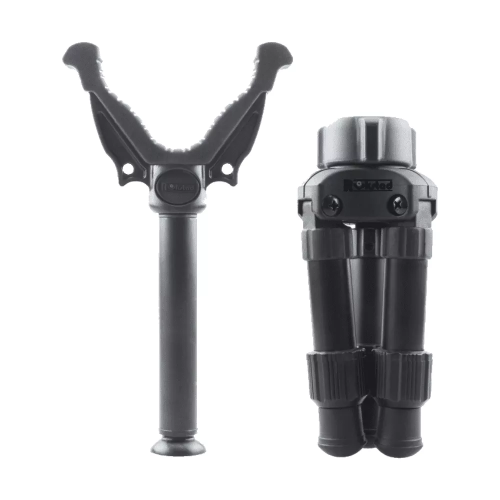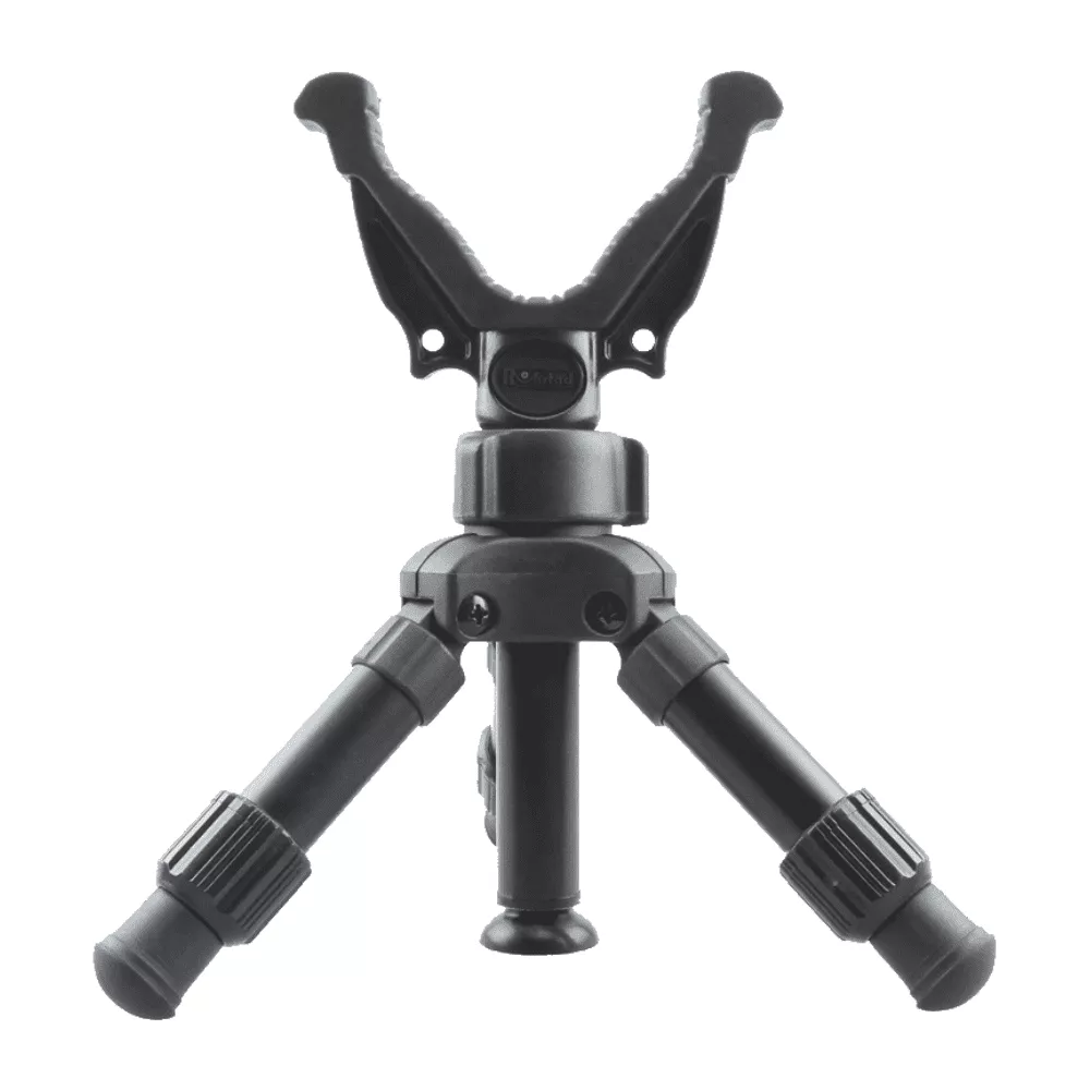 Тренога (трипод) от компании Vector Optics может использоваться как подставка для стрельбы из любых видов оружия. Для размещения оружия имеется V-образный кронштейн. Подшипник обеспечивает свободное вращение кронштейна на 360 градусов. Опора снабжена телескопическими ножками, выполненными из алюминиевого сплава 6061-T6, опорные наконечники изготовлены из резины.