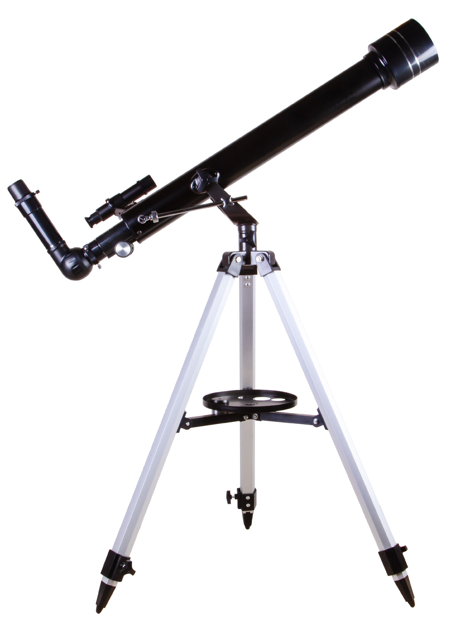 Телескоп устанавливается на алюминиевую треногу. На ней фиксируется лоток для аксессуаров. Высоту ножек треноги можно регулировать.