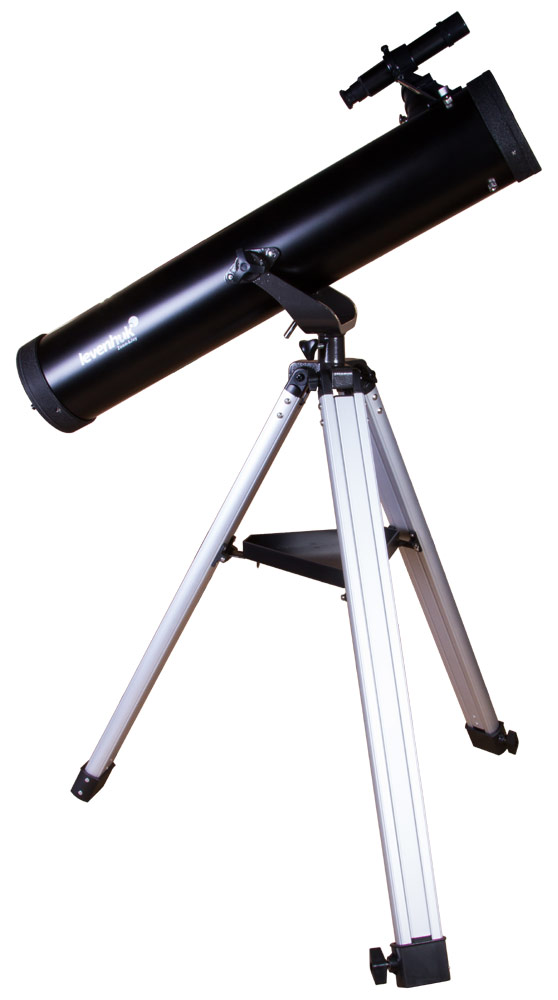 Телескоп установлен на азимутальную монтировку, которая позволяет перемещать оптическую трубу по горизонтали и по вертикали. Levenhuk Skyline BASE 80S наводится на астрономические объекты просто и быстро – с управлением легко справится даже ребенок. 6-кратный оптический искатель – дополнительная помощь при наведении. Монтировка, в свою очередь, фиксируется на алюминиевой треноге. Она стоит устойчиво и не качается даже на неровных поверхностях. Высоту ее ножек можно регулировать. Есть лоток для аксессуаров.