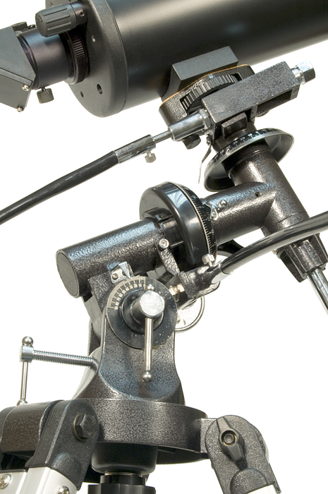 Данная модель комплектуется двумя окулярами: 10 мм (130x) и 25 мм (65x). Для поиска астрономических объектов используется искатель с красной точкой. Труба установлена на экваториальную монтировку. Высота треноги регулируется.