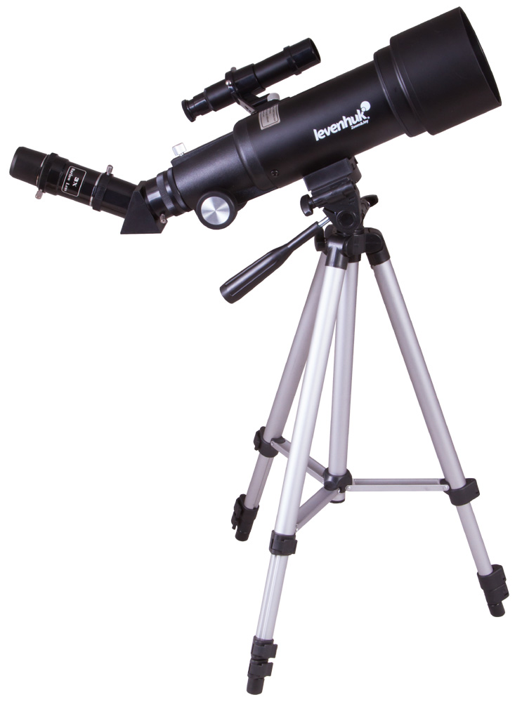 В комплект поставки входят все необходимые аксессуары – вы можете приступить к наблюдениям сразу после распаковки телескопа. В комплекте два окуляра 67x и 20x, линза Барлоу 3x, диагональная призма и солнечный фильтр. Максимальное полезное увеличение телескопа составляет 140x. Со штатными окулярами и линзой Барлоу можно получить увеличение 200x. Телескоп снабжен оптическим искателем 5x24.